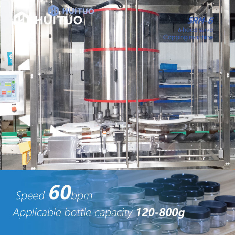 후이투오 자동 유리병 병 꿀 60bpm명과 시럽 회전식 6 머리 서보 기구에 의한 회전식 병마개기